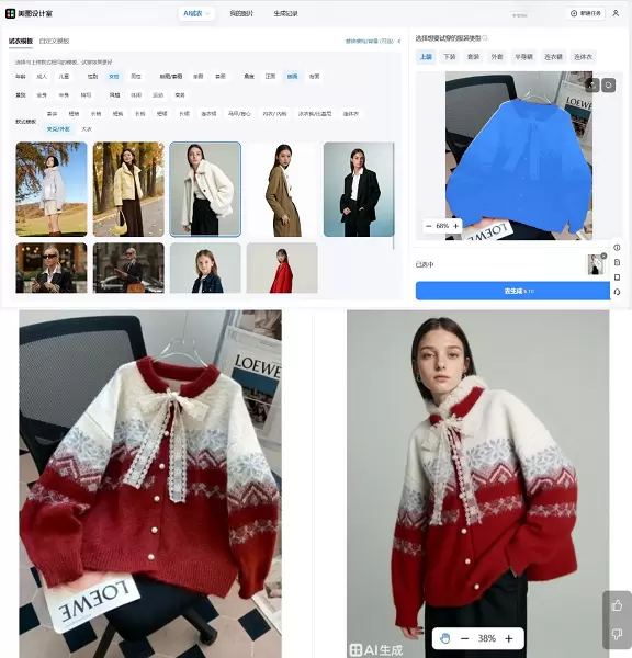 功能作用:“AI设计师”的核心是将传统复杂的作图过程简化为3步:用户上传图片后,直接输入中文文本指令,AI就能理解并生成符合要求的新图像。例如,上传服装、饰品等商品的平铺图或白底图,输入中文提示词,AI可直接生成由真人模特穿戴展示的效果图。
