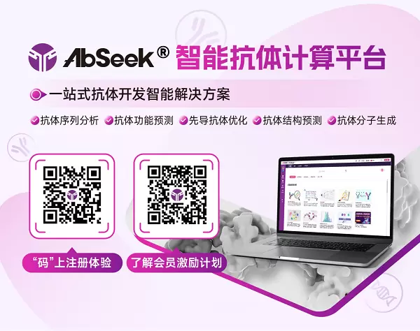 「AbSeek®智能抗体计算平台」整合多维度AI技术,在全人源抗体发现中通过AI亲和力、AI人源化、AI免疫原性、成药性等四大系统实现多目标优化:一是依托自研全人源抗体小鼠与单B细胞技术构建抗体文库,开发AI模型评估抗体-抗原结合力并生成高亲和力苗头抗体。二是基于OAS数据库多物种序列,微调模型并结合集束搜索,精准评估人源化程度,通过最小突变提升人源化水平并保留核心亲和力。三是依托IED等免疫原性多肽库,采用transformer网络识别T细胞表位风险,筛选低免疫原性抗体。四是结合实验数据与AI建立成药性评估系统,检测多项指标以提高成药阳性率,提供全流程智能支持。目前,平台已完成全面改版升级并正式接入会员系统,欢迎通过abseek.icyagen.com注册试用。