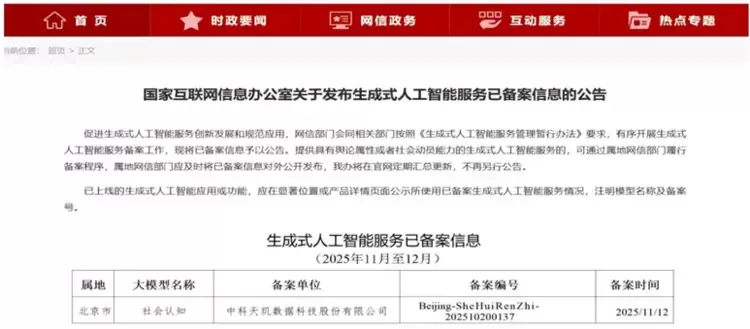 中科天玑“社会认知大模型”通过国家备案,成功获批首次进入市场支持项目