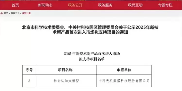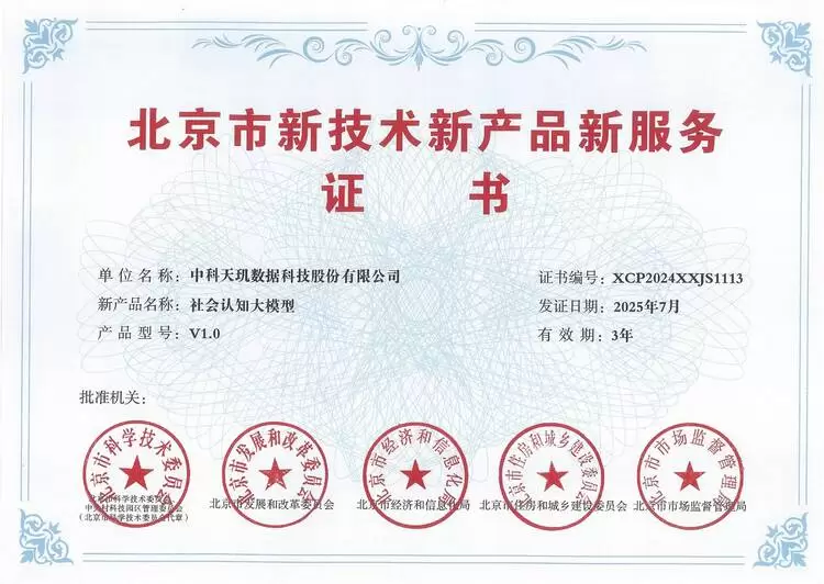 凭借突出的创新性、可靠性与应用价值,中科天玑“社会认知大模型”项目已成功入选北京市“新技术新产品首次进入市场”支持计划。这不仅是对其技术领先性与市场前景的权威认可,更是对其推动人工智能国产化产业链发展、赋能千行百业数字化转型社会效益的肯定。