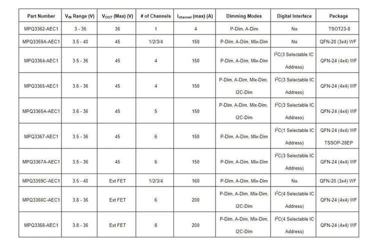 针对汽车TFT LCD型仪表,中控,HUD等显示屏应用,MPS还提供全局调光、分区调光等多种背光解决方案以满足客户的不同需求。