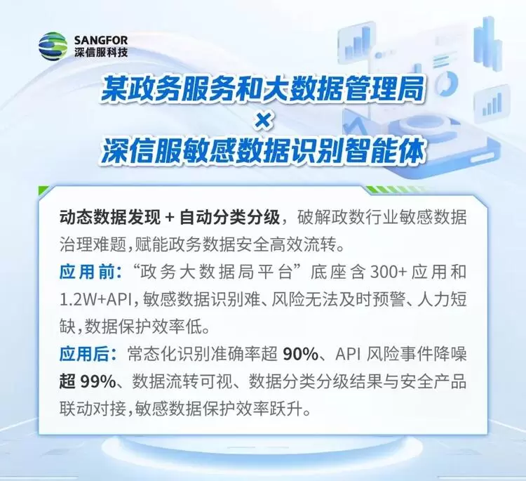 如今,深信服敏感数据识别智能体已服务上百家用户,覆盖金融、政府、能源、交通、制造等多行业,积累了丰富的场景实践经验与可复用的行业模板。