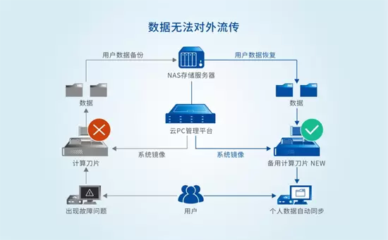 AI标注全流程均面临数据泄漏风险,一旦泄露将损害企业利益、引发法律危机。邦彦云PC将主机升级为独立计算刀片集中部署于数据中心,通过物理隔离实现多网分离。终端仅传输加密图像流与控制信号,对外设进行数据管控,例如USB接口无法私自下载公司数据,杜绝数据窃取,实现敏感信息“零落地”,为AI标注建立起强大的数据安全防护。