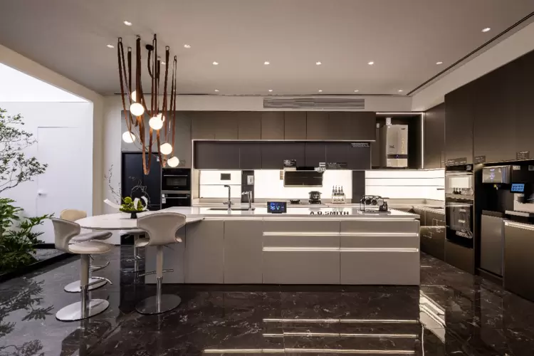 同样逻辑也应用于厨房场景。A.O.史密斯智慧「瀞」厨房将油烟机、灶具、净水机、软水机、热水器、洗碗机、蒸烤箱等全系厨电无缝连接,依托自研的LifeGPT大模型,实现语音精准控制与全场景智能联动。无论是语音指令轻松掌控油烟机运行挡位、时长,还是“检测到燃气异常立即切断并报警”,系统都能主动响应,覆盖烹饪辅助、安全防护、健康监测等多元需求。这不仅解决了开放式厨房的油烟与噪音痛点,更重塑了厨房不再作为功能需求而是品味生活的舞台的新生态。