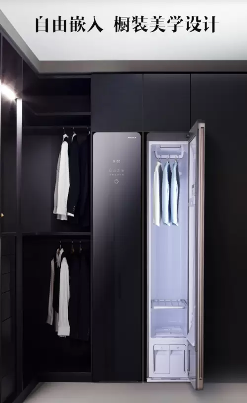 当家电不再是突兀的 “功能单品”,而是家居风格的延伸,澳柯玛智慧衣物护理机以 “由嵌入 + 橱装美学设计”,完美适配现代简约、轻奢等多元家装风格。机身采用一体化深色调质感外观,可与定制衣柜无缝嵌合,既节省空间,又让衣帽间更显整洁高级;无需额外预留过多操作空间,日常使用与家居颜值兼顾,让护理机成为家居场景的 “隐形质感担当”。