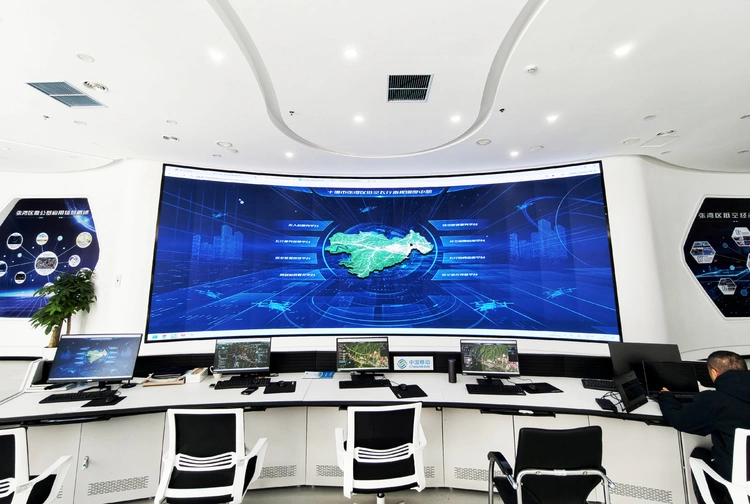 在湖北十堰张湾区双创中心的指挥大厅内,工作人员轻点鼠标,随着指令发出,数架无人机应声而起,化身“低空侦察兵”,沿着规划航线对城市进行网格化巡检。