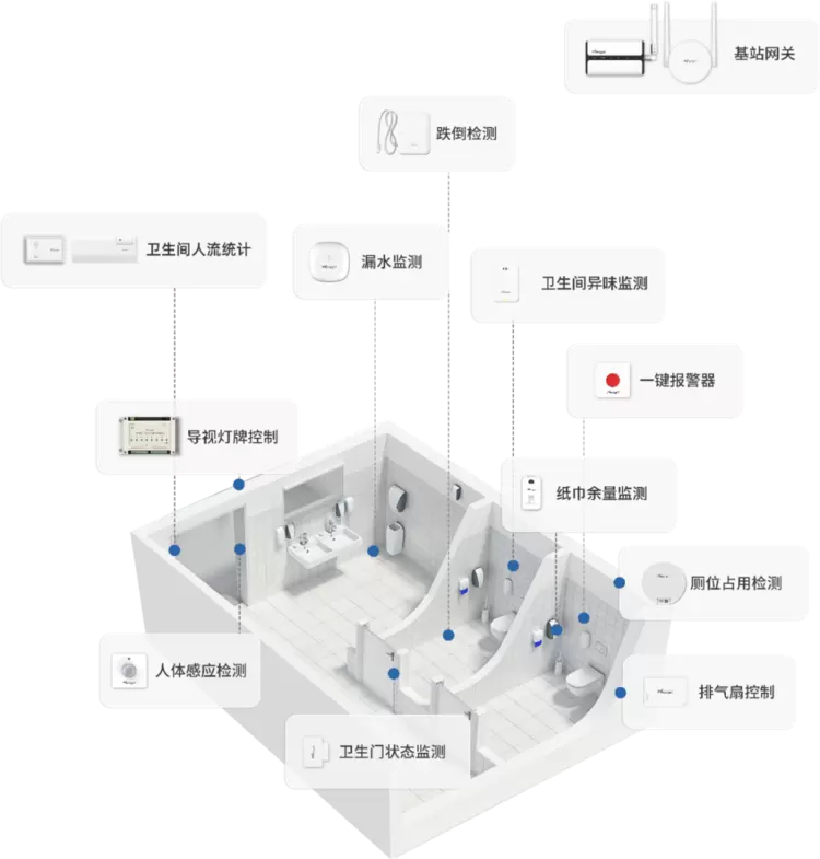 针对卫生间新建与改造场景的核心需求,结合国内外多个成功落地案例,星纵物联整合推出 “智慧卫生间产品解决方案”。方案采用无线部署,可在不影响卫生间正常使用的前提下,精准解决传统卫生间运营管理中的痛点,快速实现卫生间场景智能化与数字化升级。