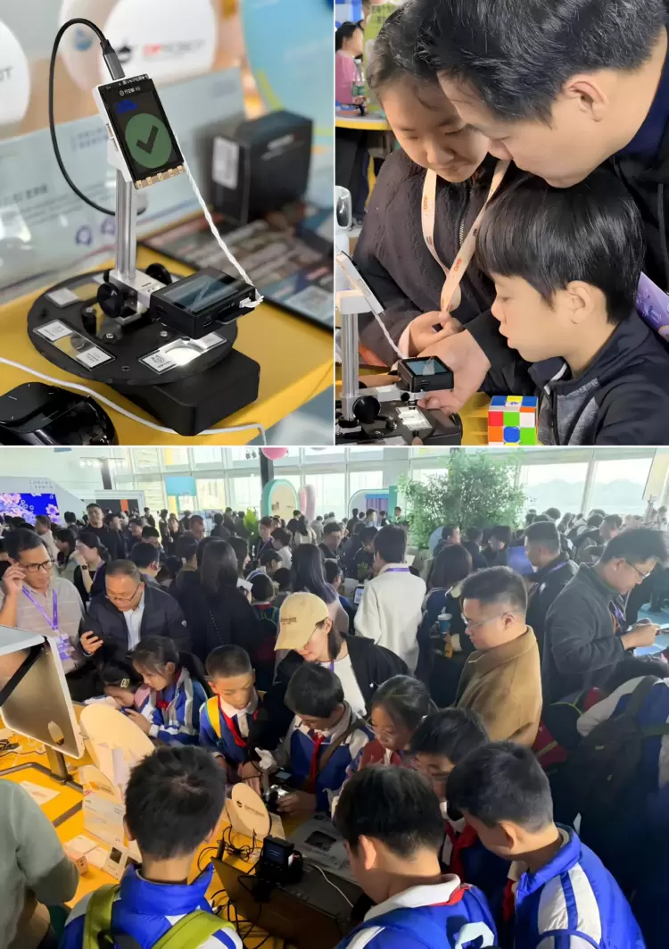 DFRobot特别展示了二哈识图2AI视觉传感器在微观观测领域的创新应用。设备支持多种专业镜头更换,可在显微场景下清晰捕捉如洋葱表皮细胞、植物茎部结构等微观细节,并通过无线传输实现画面实时投屏。结合通义大模型的图像理解与解析能力,微观世界的结构特征能够被实时识别、分析和解释,为生物教学、科学探究及专业科研提供了强有力的创新工具。