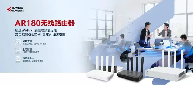 华为坤灵AR180搭载Wi-Fi 7高速传输技术与鲲鹏CPU架构,融合灵驱AI加速引擎,构建稳定高效的网络底座。凭借高增益天线设计,信号覆盖能力显著提升,轻松穿透多墙体阻隔,满足办公场景多设备并发连接需求。同时具备上网行为管理与设备管控双重功能,实现网络使用可视化、可管控,为企业及家庭用户提供高速、安全、智能的组网方案。