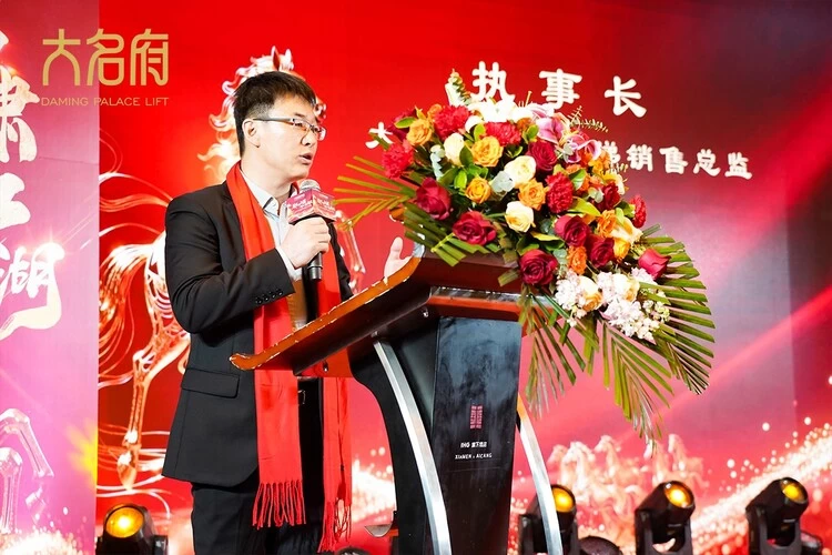 大名府家用电梯总经理王健先生首先发表致辞。以“总舵主”之姿登台亮剑,深度剖析行业变局,铿锵肯定全国分舵逆势突围的辉煌战绩!他强调:“过去,生意在于店;未来,生意更在于人,”2026年总舵将全面启动 “个人IP赋能计划”,为新征程锚定核心航向,尽显领航者的远见与魄力!