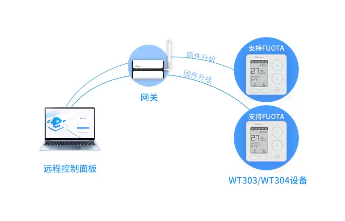 星纵物联WT303/WT304智能风机盘管温控器支持FUOTA(空中固件升级),能够快速实现固件远程升级,确保设备始终处于最佳性能状态并具备最新功能。