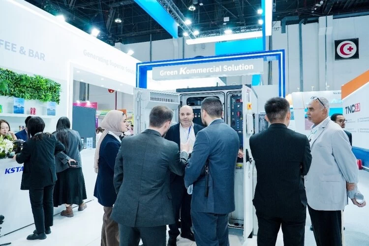 在Green Kommercial Solution展区,科士达重点推介了BluePulse系列工商业储能系统。该系统采用模块化设计,容量覆盖70至107 kWh,支持灵活扩展,集成了顶级电芯与双重消防保护,已成功服务于中东地区多个工商业项目,为客户带来显著经济效益。同台亮相的BlueKernel系列125 kW并网逆变器,以其高达98.7%的转换效率、IP66高防护等级及强大的环境适应性,成为工商业屋顶电站的可靠之选。