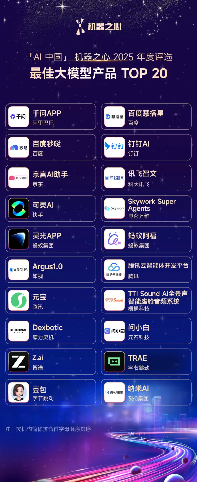 「AI 中国」 机器之心2025年度“最佳大模型产品TOP20”