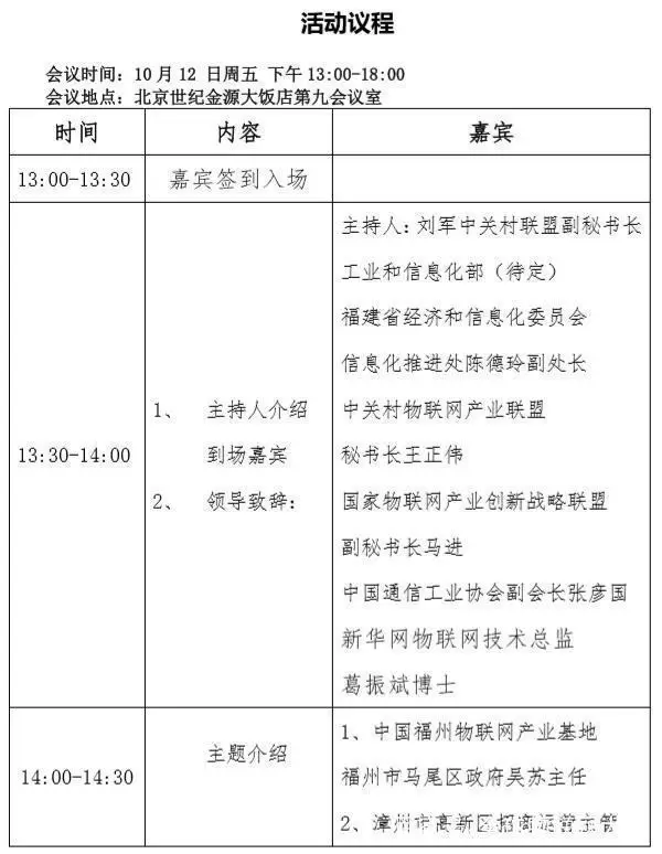 特别声明:场地有限,请各会员单位及参会者于10月10日17:00前回复中关村物联网联盟会展部。