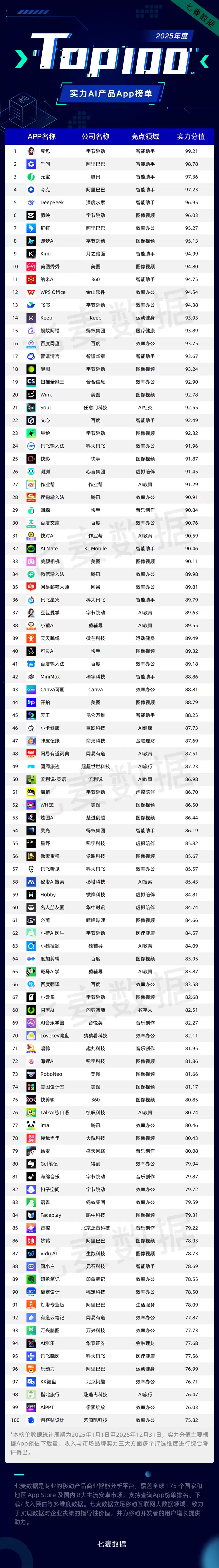 七麦数据《2025年度实力AI产品App榜单》正式发布,全景解码AI领域全年趋势与实力产品