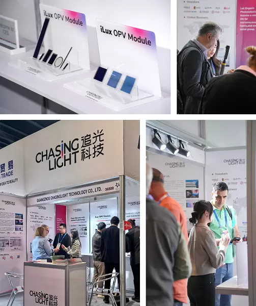 展会现场,追光科技重点展出iLux系列OPV模组产品及搭载电源管理芯片的iLux+供能方案,主要面向室内光环境,应用于智能门锁、AI穿戴设备、遥控器、耳机、键鼠等3C数码、智慧家居与物联网传感终端等领域,推动电子产品向无电池化、自供能方向发展。据悉,除消费电子领域外,未来将延伸至车载光伏、建筑光伏等更广泛的场景。