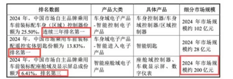 1.车身域控制器:三连冠打破外资垄断2024年,埃泰克在中国市场自主品牌乘用车前装标配车身(域)控制器(含区域控制器)的市场占比达25.50%,连续三年排名第一。这一成绩不仅确立了埃泰克的行业主导力,更打破了国际汽车电子厂商在该领域的长期垄断,实现了国产替代的关键突破。