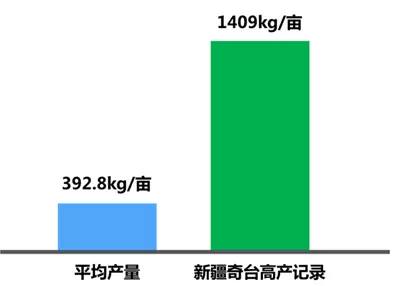 【2015年,全国玉米平均产量为392.9kg/亩,新疆奇台高产记录1409kg/亩,通过控制影响产量的因素玉米产量足足高出1000kg/亩。】