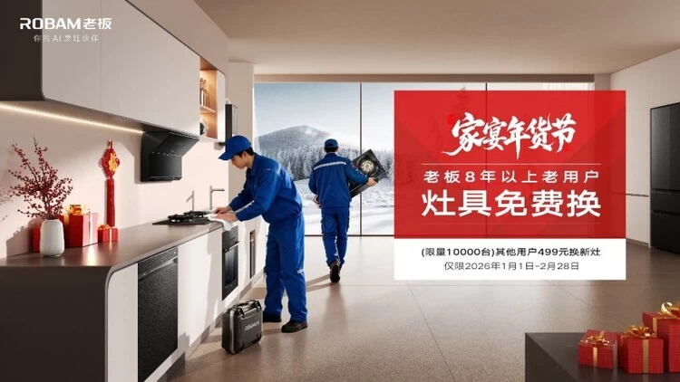 值此年终家电换新黄金节点,始终以用户为中心的老板电器,积极响应国家号召,重磅开启“家宴年货节”灶具换新专项活动。不仅为8年以上老用户送上免费换新福利,更以多重暖心权益与前沿科技,让厨房焕新更省心、烹饪更安心,用46年深耕烹饪领域的匠心,守护每一份新春团圆滋味。