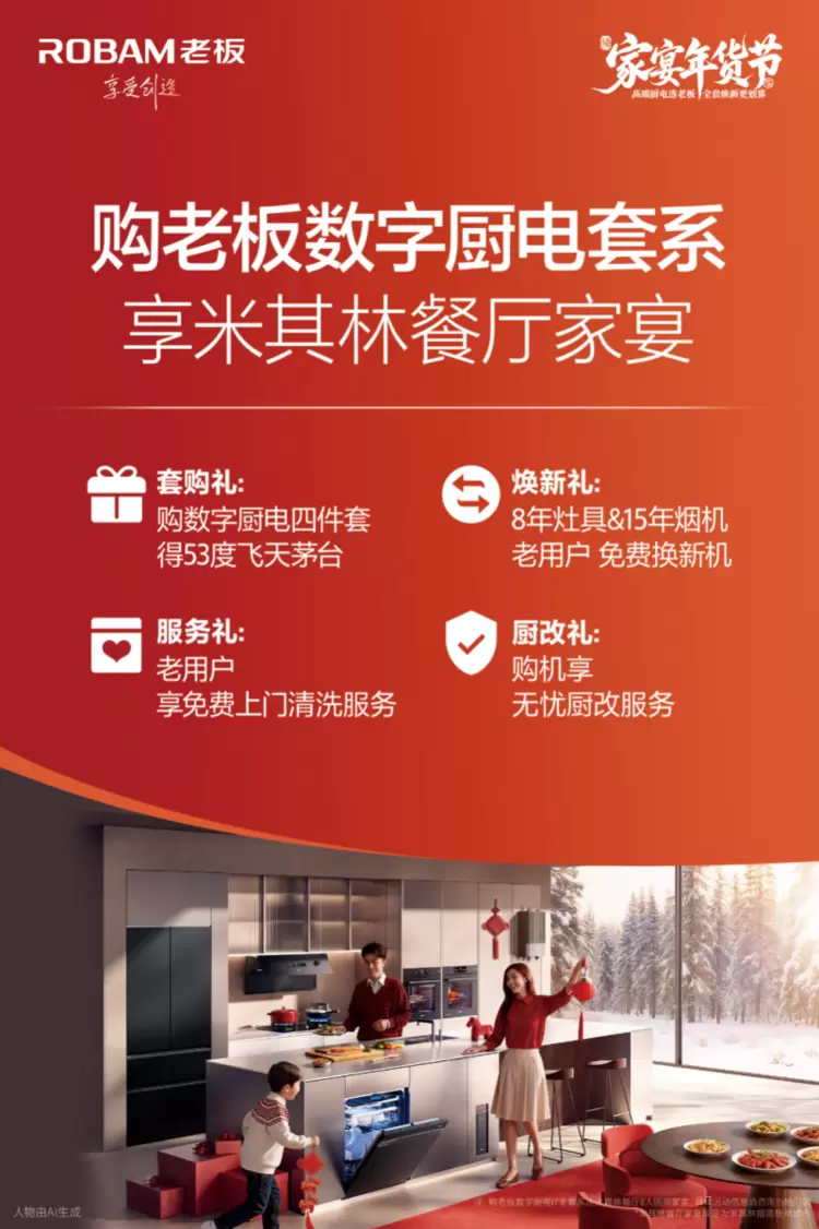 8年灶具免费换,套系换购享米其林家宴!老板电器“家宴年货节”火热开启