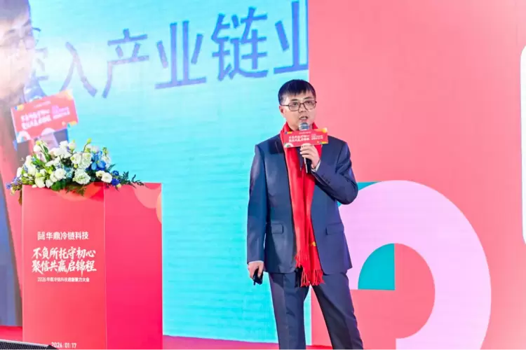 中物联农产品与食材供应链分会秘书长于凤龙在大会致辞中,对华鼎冷链科技的行业贡献给予高度肯定。他指出,当前餐饮与食材产业正面临效率提升的核心难题,而华鼎冷链科技通过持续的技术与管理创新,运用数智化工具深度赋能行业上下游,显著推动了全产业链的效能升级,为行业高质量发展注入了强劲动力。