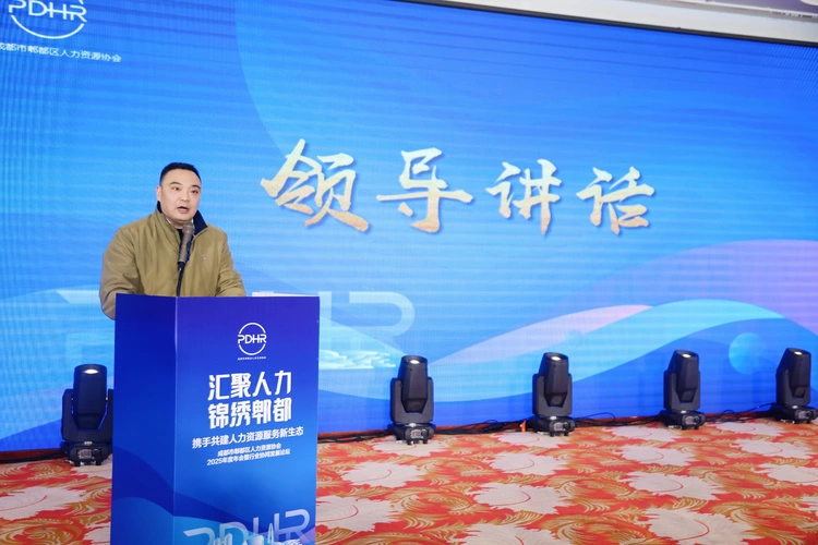 随后,郫都区人社局局长尹继东、四川省人力资源协会领导先后发表讲话,为区域人力资源行业发展擘画蓝图。尹继东局长结合郫都区产业发展实际,强调要以新质生产力发展为导向,推动人力资源服务业与制造业、高新技术产业深度融合,健全人才引育留用全链条机制,为区域经济高质量发展筑牢人才根基。四川省人力资源协会领导则从全省行业发展全局出发,分享了人力资源服务业的发展态势与政策红利,鼓励郫都区人力资源协会立足区域优势,深耕特色服务领域,打造标杆性行业组织,引领区域人力资源行业协同共进、聚力发展。