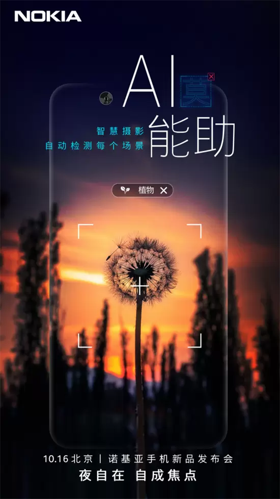 AI拍摄的功能,包括强大的美颜自拍功能、面部识别、滤镜、美肤、色彩对比、舞台灯效果、人像打光、图片模糊、景深虚化等,这在诺基亚今年发布的机型中,都有所体现。从今天诺基亚官方曝出的海报中可以看出,新机在AI拍摄方面将会有不小的提升。