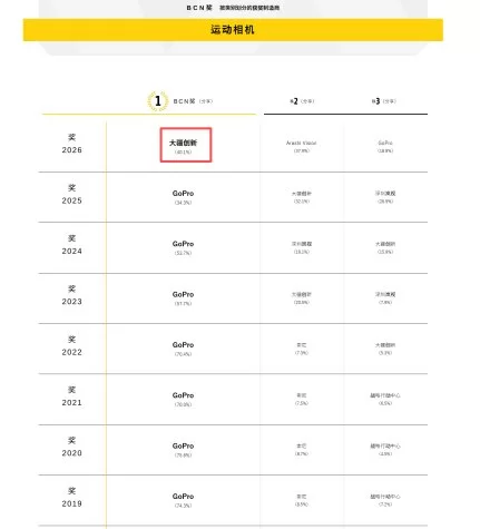 值得一提的是,在“BCN AWARD 2026”评选中,大疆已蝉联数码摄像机品类年度销量冠军。深受全球用户喜爱的Osmo Pocket 3手持云台相机,凭借其电影级画质、智能跟随及便携设计,持续引领着手持拍摄风潮。这意味着,无论是专业级的手持云台相机,还是极限环境下的运动相机,大疆均已站在市场之巅,实现了在消费级影像创作领域的全面引领。