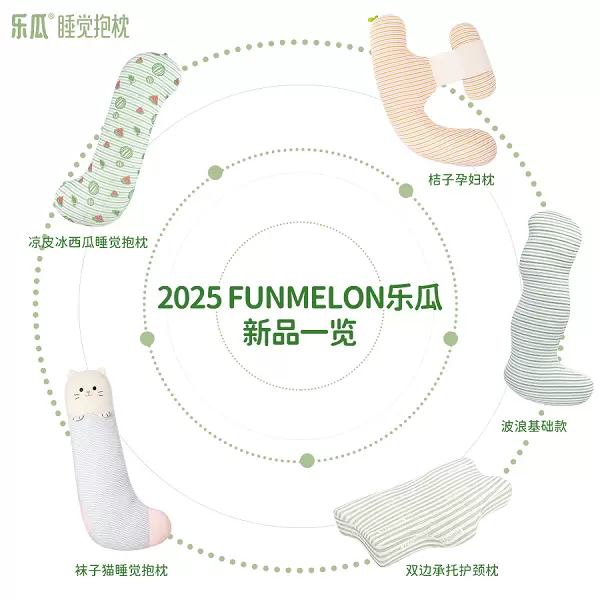 同时,FUNMELON乐瓜进一步深化对特殊需求人群的关怀,推出人体工学设计的“孕妇款睡觉抱枕”,通过对手臂、腹部、腰腿的多点支撑,缓解孕期不适。