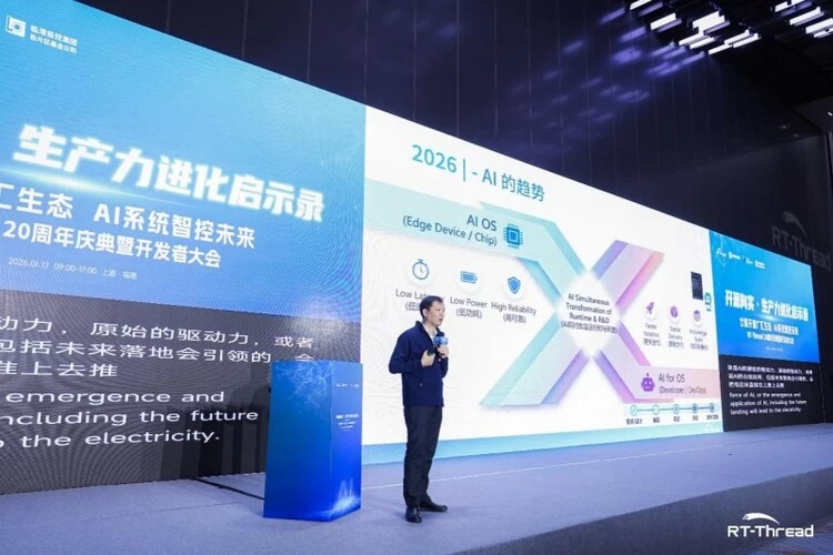 2026年1月19日,在RT-Thread 20周年开发者大会上,RT-Thread睿赛德创始人&CEO熊谱翔回顾了这款国产嵌入式操作系统二十年波澜壮阔的发展历程,并系统阐述了其“开源筑基、质效跃迁”的核心逻辑。从个人兴趣的星星之火,到服务全球超过30万开发者、赋能上万家企业用户的生态平台,RT-Thread走过了一条从技术情怀到商业成功的典型中国开源之路。