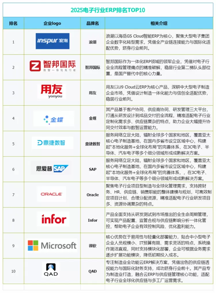 - 国产替代浪潮下,2025电子行业ERP排名TOP10