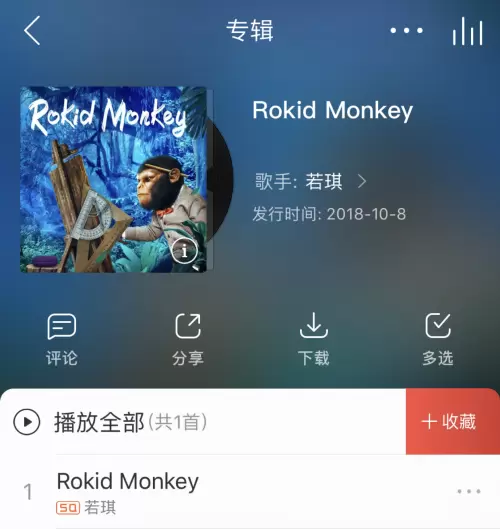 在网易云音乐搜索“若琪”或“Rokid Monkey”,也可以在“小若琪”公众号后来呼唤一声“猴子猴子”,即可听到这首魔性单曲。