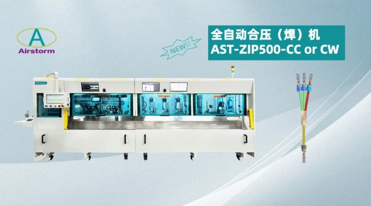 针对新能源汽车高压线束加工的复杂需求,无锡爱思通推出HSC800-7高压线剥切翻一体机。作为“七合一”全能解决方案,它集成剥外绝缘皮、切铝箔、翻屏蔽网等七道关键工序于一步自动化完成。模块化设计灵活适配不同线材结构,在大幅提升生产效率的同时,确保了产品品质的极致稳定与可靠。另一款明星设备 AST-ZIP500-CC or CW 全自动合压(焊)机,则为多线合并压接(焊接)提供一站式自动化方案。支持最多8根线(端子种类≤4)的自动合压(焊)与热缩处理,具备切线、剥皮、穿栓、压接、合压(焊)及热缩等完整功能。其特点在于柔性化强、换型快速(一键切换)、节拍高效(约2.1-2.2秒/回路),并通过全过程在线质量监控,实现质量与效率的双重提升,助力客户节省人力、优化库存与空间。