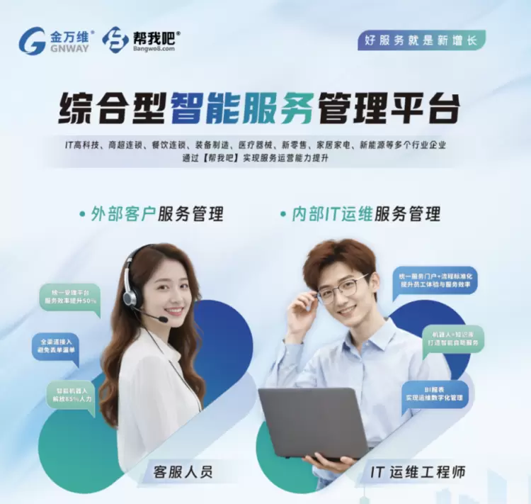 在数字化转型步入深水区的今天,企业对外客户服务与内部IT运维正面临着效率瓶颈与体验升级的双重挑战。“帮我吧”作为综合型智能服务管理平台,始终致力于将AI能力渗透至服务全链路,打造“人机协同”的高效服务模式。