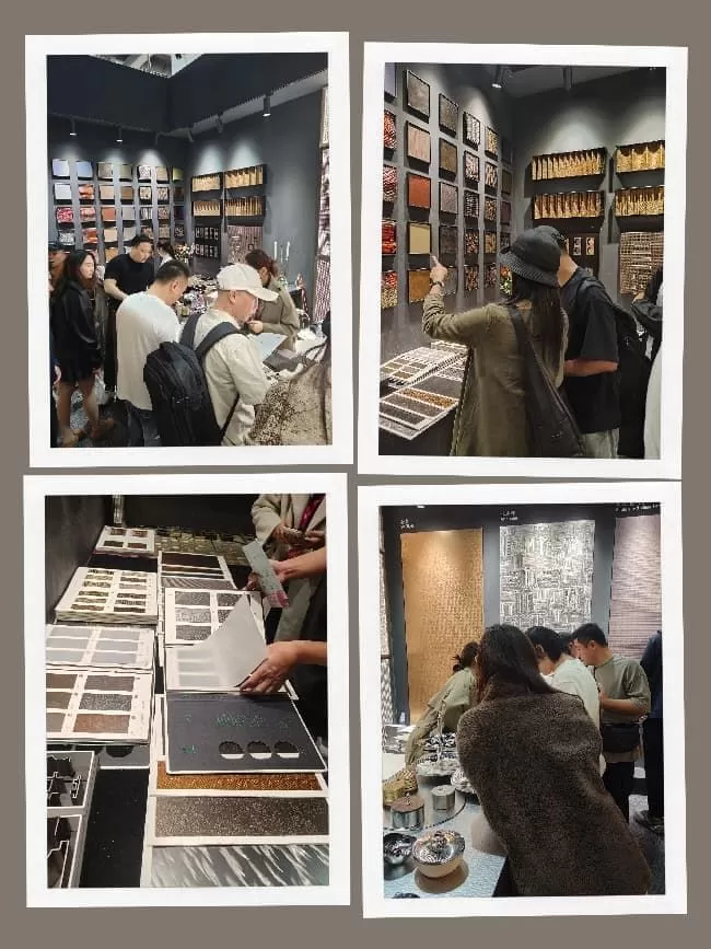 作为金属艺术材料领域的领先品牌,鼎钻钢业带来的行业首创熔淬液态金属技术产品,将液态金属流动质感与艺术锻造工艺完美融合,搭配 2000 + 种建材装饰行业表面纹理与 1000 + 项著作版权原创设计,让每一款产品都兼具独特性与稀缺性。展台以场景化陈列方式,直观呈现了批量精装地产不锈钢材料的稳定品质、别墅豪宅不锈钢材料的美学质感、甲级写字楼幕墙不锈钢专用板的坚固性能,吸引众多设计师、地产商及海外采购商驻足咨询、洽谈合作。