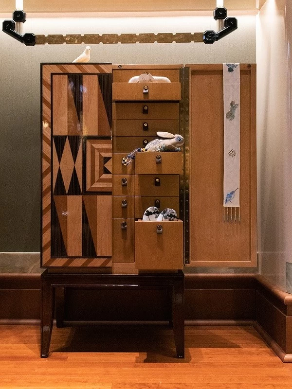 「海上阁」一名,是来自野兽派首席创意官Lingjie对该空间理想属性的解读:“‘海上’并非地理指向,而是上海中西交汇、古今并置的文化想象;‘阁’,则是于喧嚣中抽身的一处凝视之境。「海上阁」故此呈现审美的‘混血’,不复刻旧章,而以实验重组——拆解 1920 年代 Art Deco 的结构秩序,再融入野兽派的当代情绪。既有老上海见多识广的定力,也保留此刻不肯循规的锋芒。” 也正因此,「海上阁」并非装饰性的题头,而是对这座空间气质的准确定调。