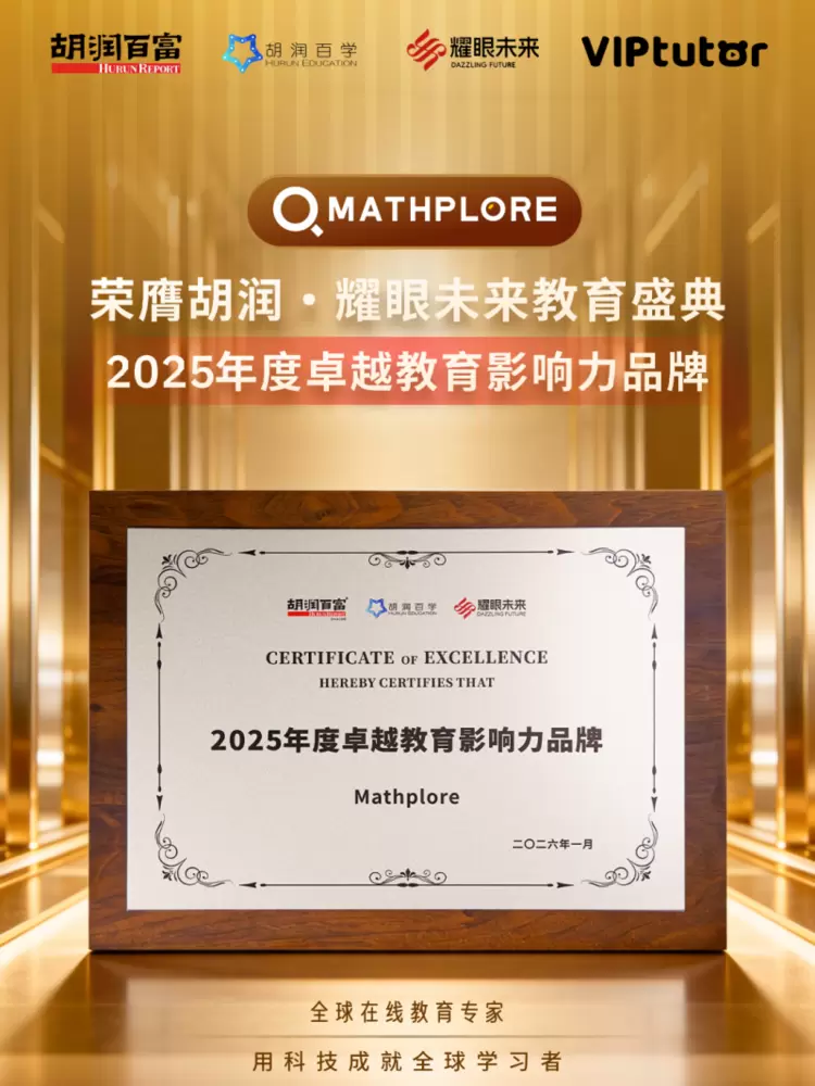 2026年1月25日,2025胡润·耀眼未来教育盛典在上海前滩香格里拉酒店成功举行。VIPtutor旗下Mathplore品牌应邀参与此次盛会,并凭借七年来卓越的教育成果与持续的创新能力,荣获胡润教育盛典2025年度卓越教育影响力品牌!