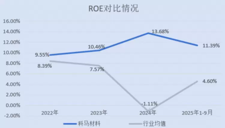 毛利率从 2022 年 34.91% 逐年攀升至 2025 年 1-9 月的 49.68%,ROE 持续高于行业均值,2024 年达 13.68%,远超同行业可比公司的 - 1.11%。