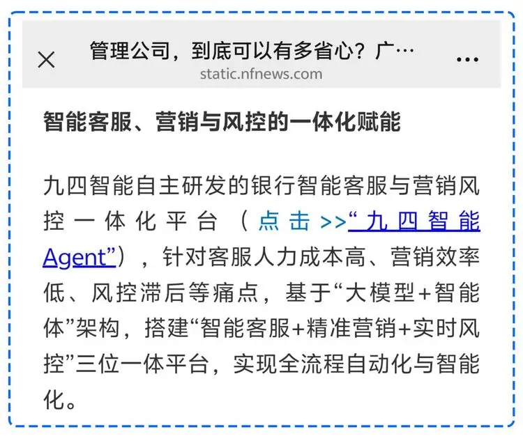 从行业网友的热烈讨论,到合作伙伴的高度认可,再到此次官方主流媒体《南方日报》的重点聚焦,九四智能大模型语音Agent刷屏的背后,是市场对“AI技术实用化”的集体期待。在数字化转型向纵深推进的今天,九四智能用多个行业的落地成果证明,智能Agent不是遥远的技术概念,而是能够解决企业实际问题、创造商业价值的核心工具。
