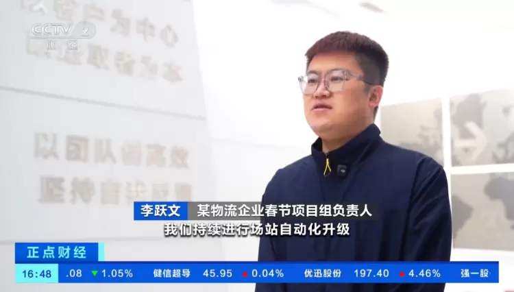 同时,德邦快递持续进行场站自动化升级。在央视播出的《正点财经》节目中,德邦快递春节项目组负责人李跃文表示:“我们引入了具备自主定位自主放货功能的无人叉车,构建安全高效的人机协同作业模式,通过多举措同步发力,提升了整个货物的中转质量,也让货物运送变得更快、更准、更稳。”