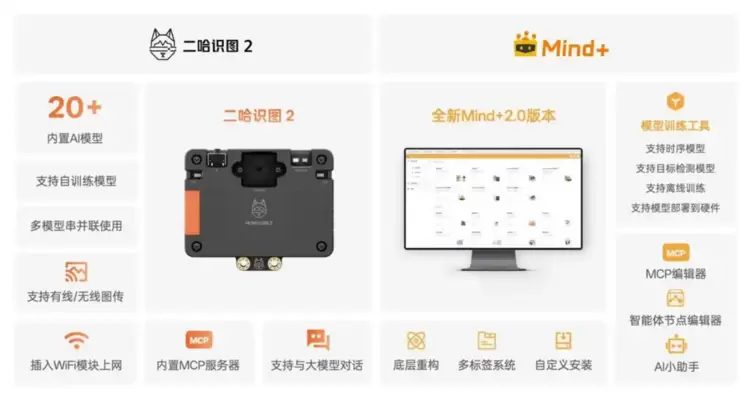 蘑菇云此次获奖的产品核心支撑,是其全新升级的“二哈识图2”AI视觉传感器与深度重构的“Mind+ 2.0”图形化编程软件。这一软硬件结合的创新解决方案,旨在将复杂的人工智能技术转化为中小学师生可轻松上手、深度实践的STEM教学工具。