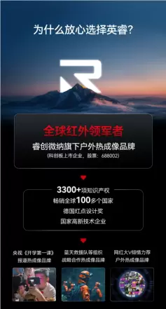 英睿户外是睿创微纳集团旗下的全资子公司,同时也是集体旗下唯一的户外热成像子品牌。依托集团资源,英睿户外拥有雄厚的研发力量,累计拥有3300多项知识产权和百余项核心专利,产品畅销全球100多个国家和地区。其卓越的设计能力更是获得了国际认可,斩获了德国红点设计奖和IF设计奖等国际权威设计大奖。
