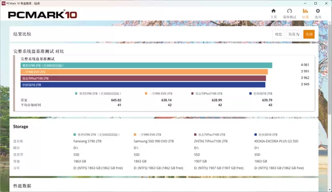 英韧IG5222版梵想S790 2TB在PCMark 10完整系统盘基准测试中获得4061分,在同类产品中表现突出。