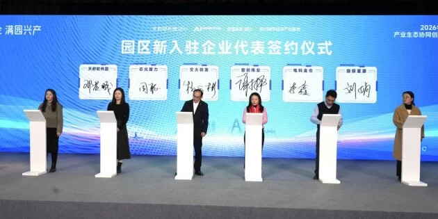 2025年,150余家新企业相继入驻天府软件园及姊妹园区AI创新中心、星耀高新·智谷,签约面积创下历史新高。其中,芯光算力、交大铁发、音创伟业、中电科金仓、旋极星源作为新企业代表出席签约仪式。这些企业的加入为园区带来了新的活力和多样性,标志着产业共同体的进一步扩展。