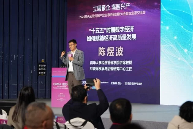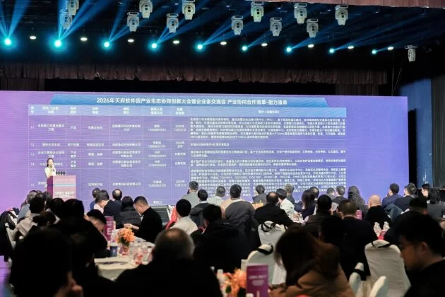 2026年1月29日,“立园聚企·满园兴产——2026年天府软件园产业生态协同创新大会暨企业家交流会”成功举办。此次大会得到了成都市经济与信息化局和成都高新区数字经济局的指导,由国家数字服务出口基地(成都)及天府软件园主办,吸引到近150位来自数字经济核心产业链各环节的政府代表、企业家、专家学者、投资人及行业协会代表参加。