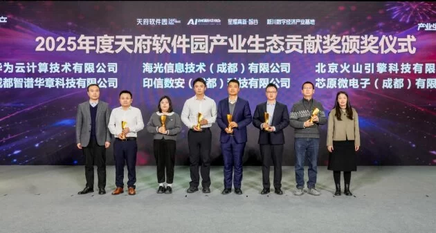 大会上颁发了“2025年度天府软件园产业生态贡献奖”,以表彰在过去一年中在产业链协作方面表现突出的企业。智谱AI、海光信息、华为云、火山引擎、芯原成都、印信数安等企业获此殊荣。