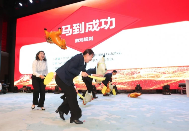 随着开场舞的响起,年会正式进入下午联欢篇章,歌舞、小品、大合唱、诗朗诵、谐音梗大挑战、击鼓传花、马到成功等一系列精彩的文艺演出、趣味互动与幸运抽奖轮番上演,为全体带来一场全方位的感官享受,也让每一位严一人在欢声笑语中感受“家”的温暖。