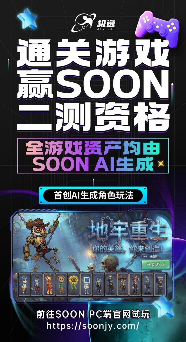高品质AI原生游戏《地牢重生》开放体验,通关解锁AI游戏创作平台SOON二测资格
