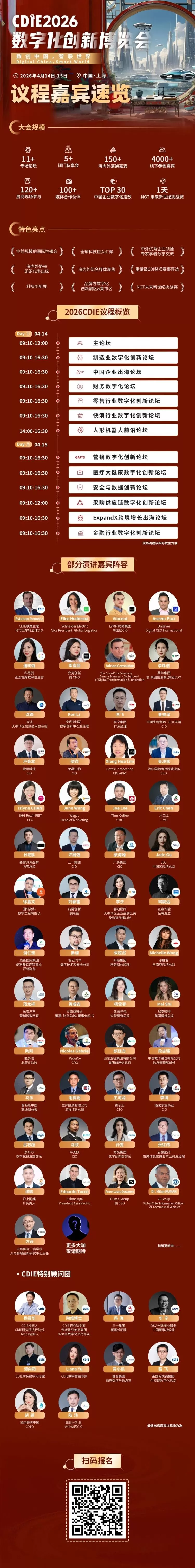 本次CDIE2026数字化创新博览会已成功邀约多位全球顶尖企业数字化领袖,他们将齐聚上海,分享前沿洞察。