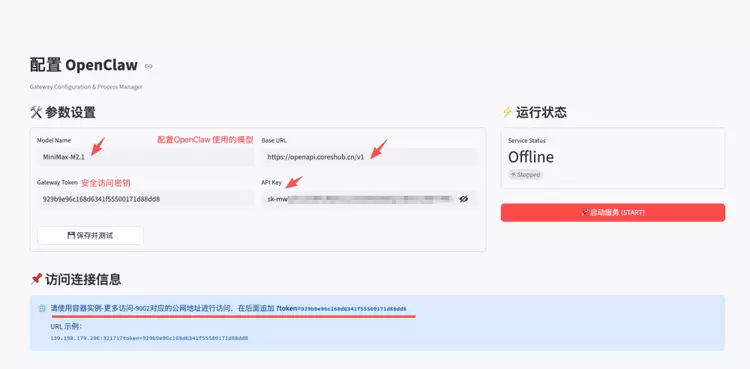 点击 「9001端口 」对应的公网地址,配置个人的模型参数: